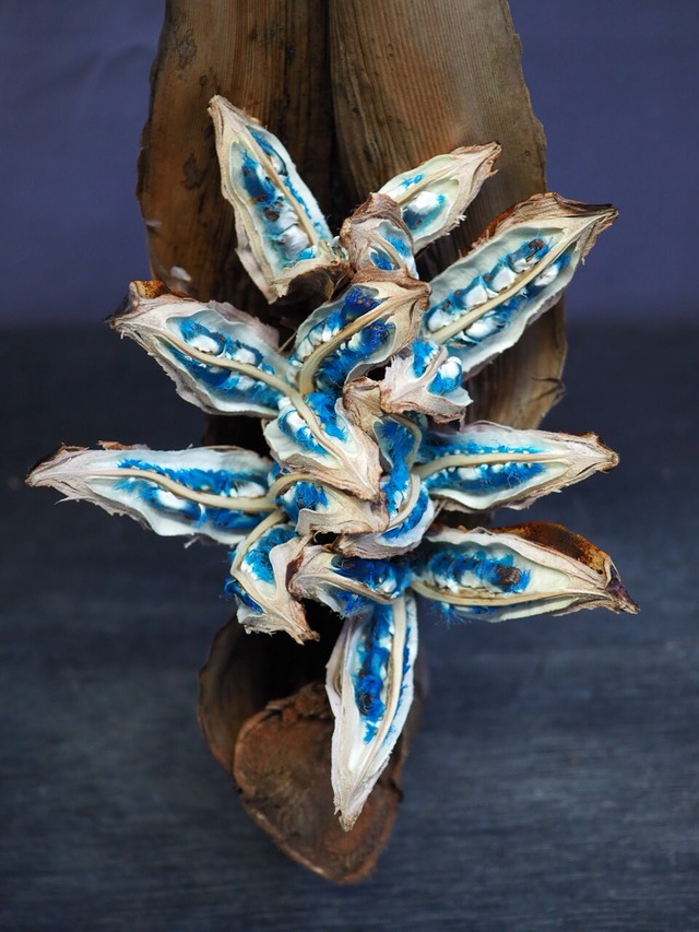 画像の商品が現品となります。 タビビトノキの種をドライフラワーにしたものになります。 種の青色は光の影響など経年劣化で少しずつ薄くなっていきます。長持ちさせたい場合は直射日光のあたらない場所での保管をおすすめします。 種は接着加工していますが輸送中にいくらか落ちる可能性もあります。予めご了承ください。 気になる点がございましたら遠慮なく「CONTACT」でお問合せください。電話に関しては現場作業中の場合は出れない場合がございます。 Unfortunately, not all items are available for shipping outside Japan. 【以下、ご購入前に必ずご確認お願い致します】 ・規定範囲内での殺虫剤などを使用している場合がございます。特定の昆虫以外への影響は少ないかと思いますがテラリウムなどで生体といっしょに使用する場合は植え替えるなど個人の判断で慎重にお願い致します。万が一生体に影響があった場合も特定の要因究明は困難なため補償できかねます。 ・植物の性質上、受け取りまでに時間がかかりすぎると傷みがでる場合がございます。できる限り最短で受け取り可能な日時をご指定ください。指定の時間帯などあれば商品購入時に備考などに記載ください。 ・植物の性質上、生長による写真との違い、部分的な枯れ、傷み、虫の混入等がある場合がございますがご了承のうえ購入お願い致します。大きく写真と異なる場合はご連絡のうえキャンセルさせていただく場合もございます。 ・丁寧な梱包を心がけますが輸送の際に多少の葉傷みがある場合がございます。 ・種名については輸入時のインボイスネームや経験則によりますがトラブルを防ぐため画像でもご確認されたうえで購入お願い致します。 以上、ご不明な点があればお気軽にお問合せください。
